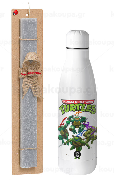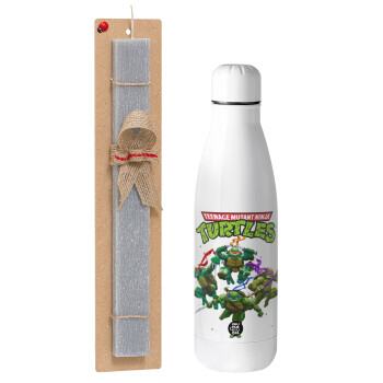 Ninja turtles, Easter Set, metallic stainless thermos bottle (500ml) & scented flat Easter candle (30cm) (GRAY)