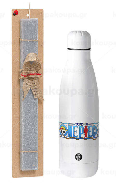Onepiece logo, Easter Set, metallic stainless thermos bottle (500ml) & scented flat Easter candle (30cm) (GRAY)