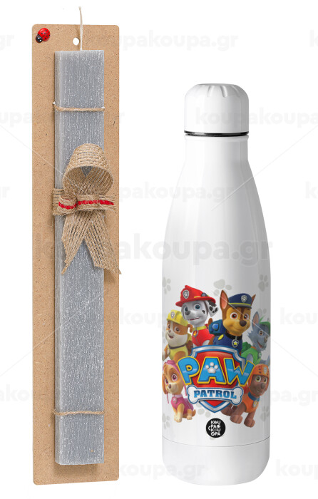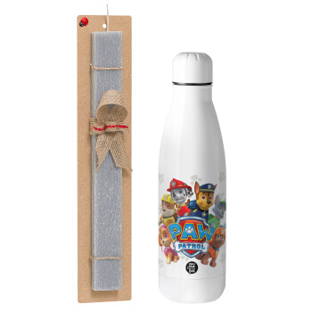 PAW patrol, Easter Set, metallic stainless thermos bottle (500ml) & scented flat Easter candle (30cm) (GRAY)