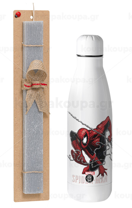 Spider-man, Easter Set, metallic stainless thermos bottle (500ml) & scented flat Easter candle (30cm) (GRAY)
