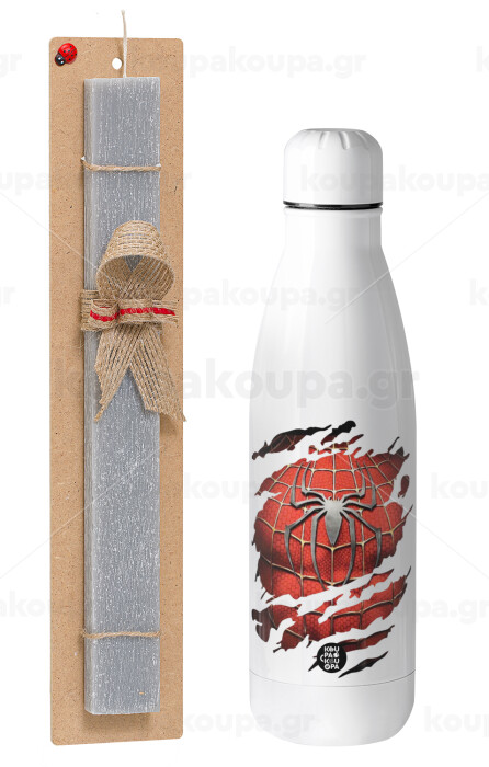 Spiderman cracked, Easter Set, metallic stainless thermos bottle (500ml) & scented flat Easter candle (30cm) (GRAY)