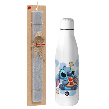 Stitch Pizza, Easter Set, metallic stainless thermos bottle (500ml) & scented flat Easter candle (30cm) (GRAY)