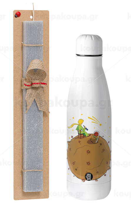 The Little prince planet, Easter Set, metallic stainless thermos bottle (500ml) & scented flat Easter candle (30cm) (GRAY)