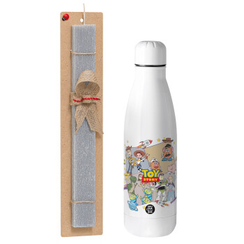 toystory characters, Easter Set, metallic stainless thermos bottle (500ml) & scented flat Easter candle (30cm) (GRAY)
