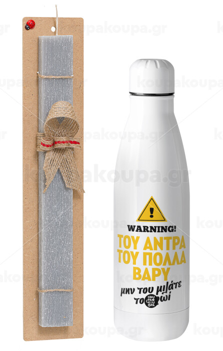 Του άντρα του πολλά βαρύ, Easter Set, metallic stainless thermos bottle (500ml) & scented flat Easter candle (30cm) (GRAY)