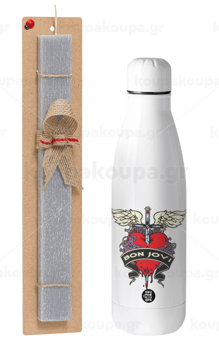 Bon Jovi, Easter Set, metallic stainless thermos bottle (500ml) & scented flat Easter candle (30cm) (GRAY)