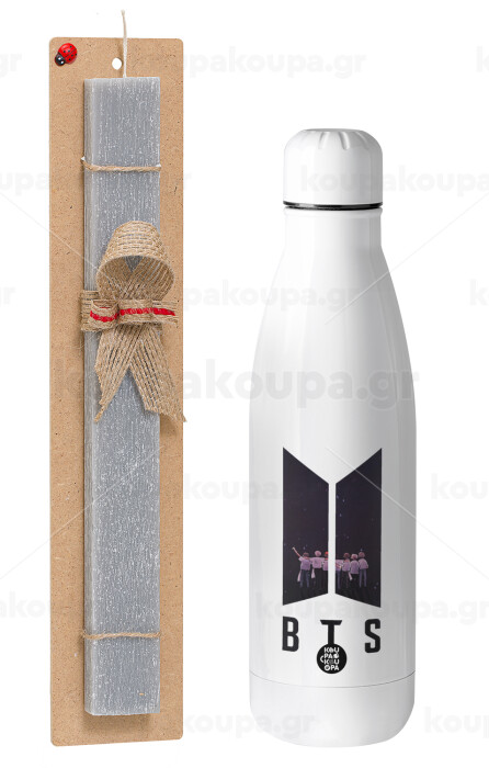BTS, Easter Set, metallic stainless thermos bottle (500ml) & scented flat Easter candle (30cm) (GRAY)