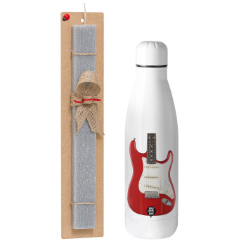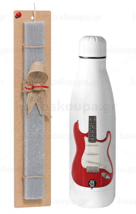 Guitar stratocaster, Easter Set, metallic stainless thermos bottle (500ml) & scented flat Easter candle (30cm) (GRAY)
