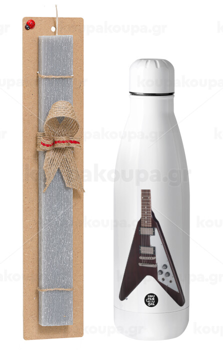 Guitar flying V, Easter Set, metallic stainless thermos bottle (500ml) & scented flat Easter candle (30cm) (GRAY)