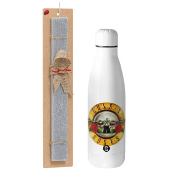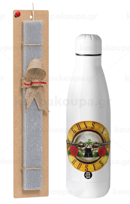 Guns N' Roses, Easter Set, metallic stainless thermos bottle (500ml) & scented flat Easter candle (30cm) (GRAY)