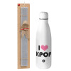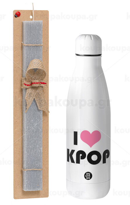 I Love KPOP, Easter Set, metallic stainless thermos bottle (500ml) & scented flat Easter candle (30cm) (GRAY)