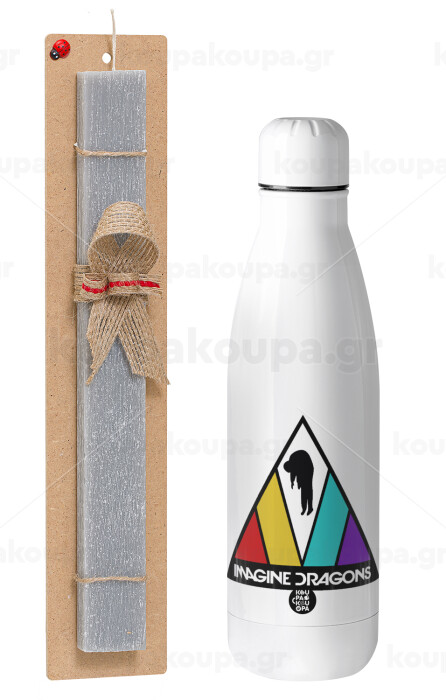 Imagine Dragons, Easter Set, metallic stainless thermos bottle (500ml) & scented flat Easter candle (30cm) (GRAY)