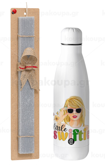 Little Swiftie, Easter Set, metallic stainless thermos bottle (500ml) & scented flat Easter candle (30cm) (GRAY)