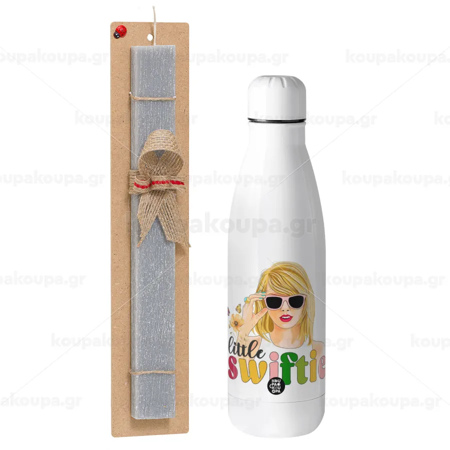 Little Swiftie, Easter Set, metallic stainless thermos bottle (500ml) & scented flat Easter candle (30cm) (GRAY)