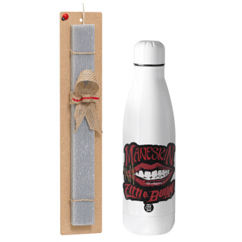 Maneskin lips, Easter Set, metallic stainless thermos bottle (500ml) & scented flat Easter candle (30cm) (GRAY)