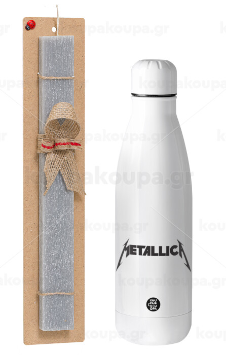 Metallica, Easter Set, metallic stainless thermos bottle (500ml) & scented flat Easter candle (30cm) (GRAY)
