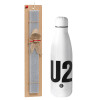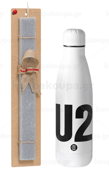 U2 , Easter Set, metallic stainless thermos bottle (500ml) & scented flat Easter candle (30cm) (GRAY)