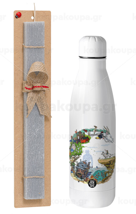 Στούδιο Γκίβλι, Easter Set, metallic stainless thermos bottle (500ml) & scented flat Easter candle (30cm) (GRAY)