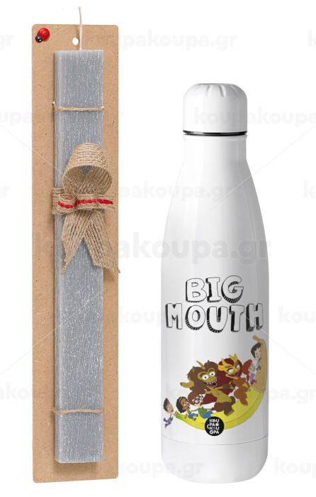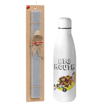 Big mouth, Easter Set, metallic stainless thermos bottle (500ml) & scented flat Easter candle (30cm) (GRAY)