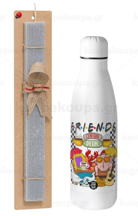 Friends, Easter Set, metallic stainless thermos bottle (500ml) & scented flat Easter candle (30cm) (GRAY)