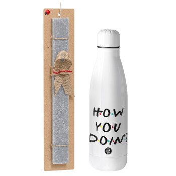 Friends How You Doin'?, Easter Set, metallic stainless thermos bottle (500ml) & scented flat Easter candle (30cm) (GRAY)