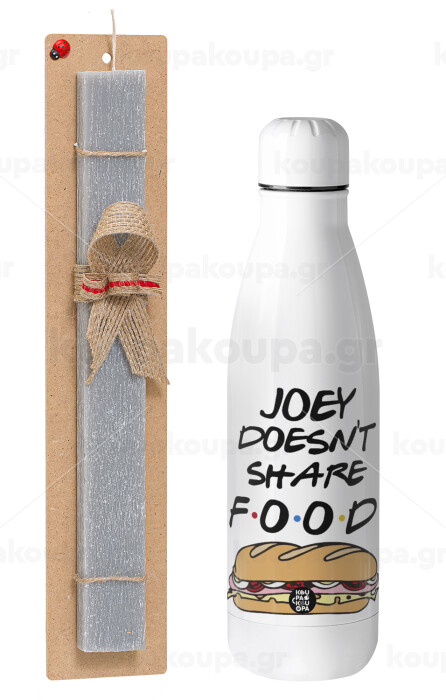 Joey Doesn't Share Food, Easter Set, metallic stainless thermos bottle (500ml) & scented flat Easter candle (30cm) (GRAY)