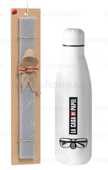 la professor, γυαλιά, Easter Set, metallic stainless thermos bottle (500ml) & scented flat Easter candle (30cm) (GRAY)