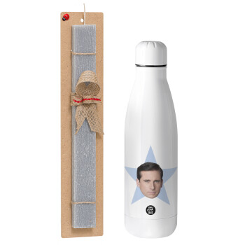 michael the office star, Easter Set, metallic stainless thermos bottle (500ml) & scented flat Easter candle (30cm) (GRAY)