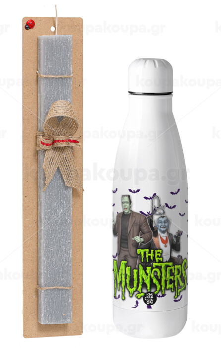 The munsters, Easter Set, metallic stainless thermos bottle (500ml) & scented flat Easter candle (30cm) (GRAY)