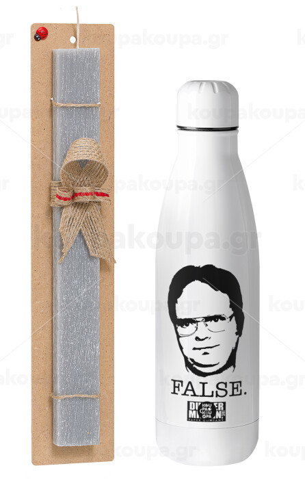 The office Dwight, Easter Set, metallic stainless thermos bottle (500ml) & scented flat Easter candle (30cm) (GRAY)