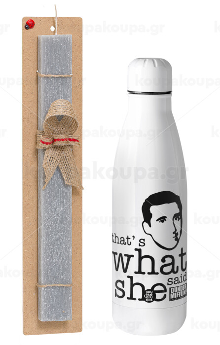 The office Michael That's what she said, Easter Set, metallic stainless thermos bottle (500ml) & scented flat Easter candle (30cm) (GRAY)