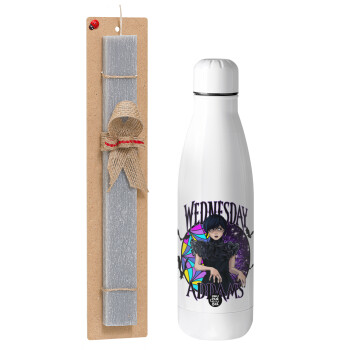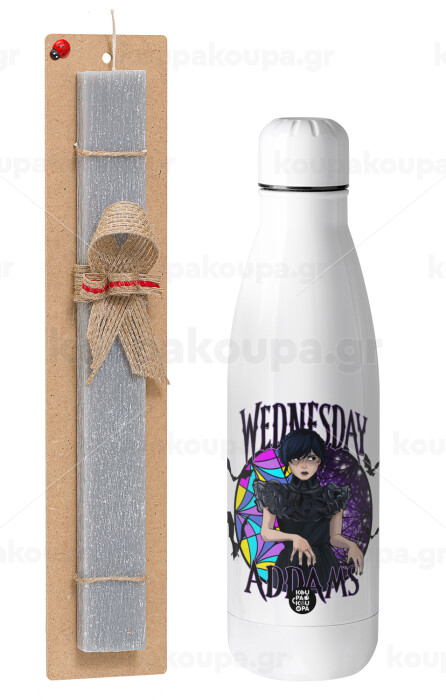 Wednesday Jenna Ortega, Easter Set, metallic stainless thermos bottle (500ml) & scented flat Easter candle (30cm) (GRAY)