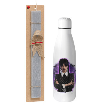 Wednesday moonlight, Easter Set, metallic stainless thermos bottle (500ml) & scented flat Easter candle (30cm) (GRAY)