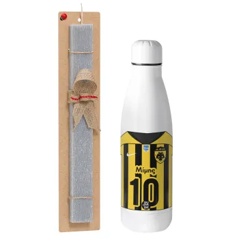 ΑΕΚ εμφάνιση, Easter Set, metallic stainless thermos bottle (500ml) & scented flat Easter candle (30cm) (GRAY)