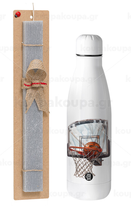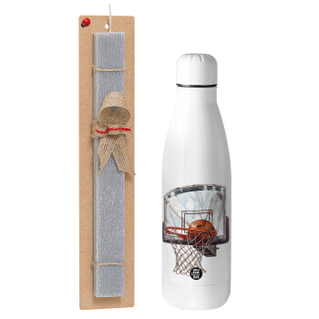 Basketball, Easter Set, metallic stainless thermos bottle (500ml) & scented flat Easter candle (30cm) (GRAY)