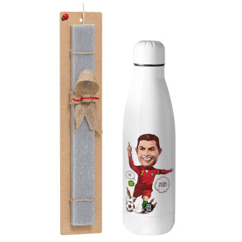 Cristiano Ronaldo, Easter Set, metallic stainless thermos bottle (500ml) & scented flat Easter candle (30cm) (GRAY)