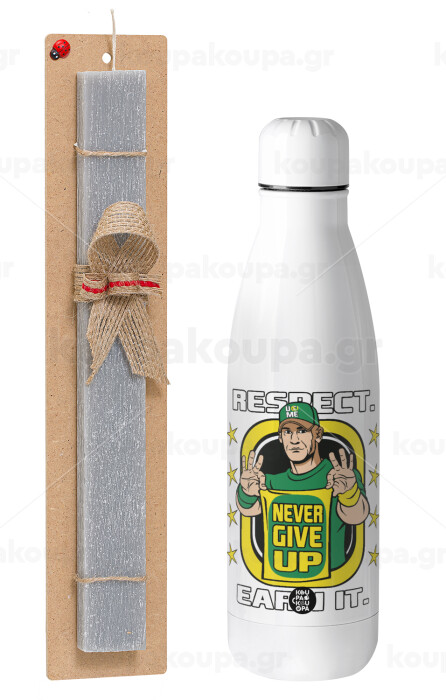 John Cena, Easter Set, metallic stainless thermos bottle (500ml) & scented flat Easter candle (30cm) (GRAY)