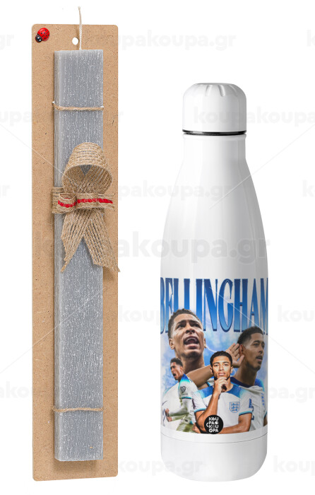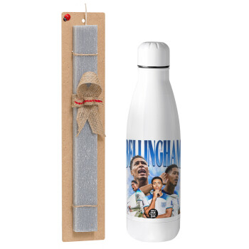 Jude Bellingham, Easter Set, metallic stainless thermos bottle (500ml) & scented flat Easter candle (30cm) (GRAY)