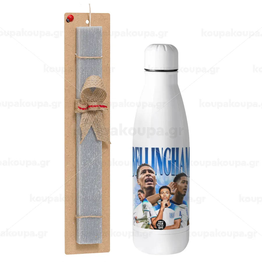Jude Bellingham, Easter Set, metallic stainless thermos bottle (500ml) & scented flat Easter candle (30cm) (GRAY)