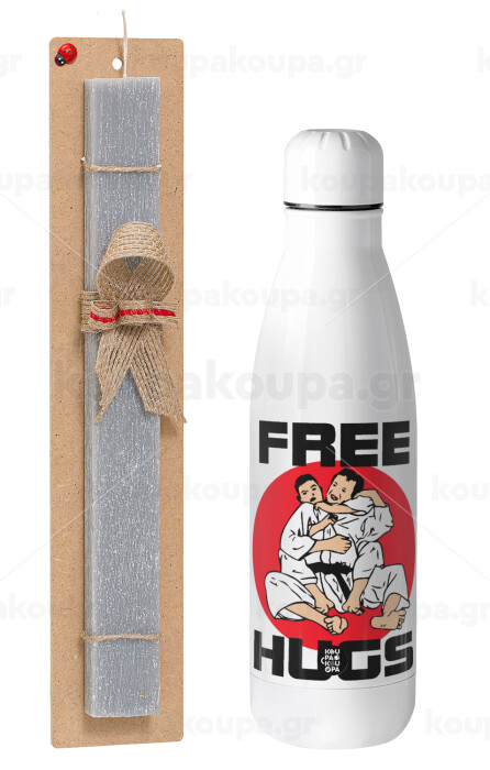 JUDO free hugs, Easter Set, metallic stainless thermos bottle (500ml) & scented flat Easter candle (30cm) (GRAY)