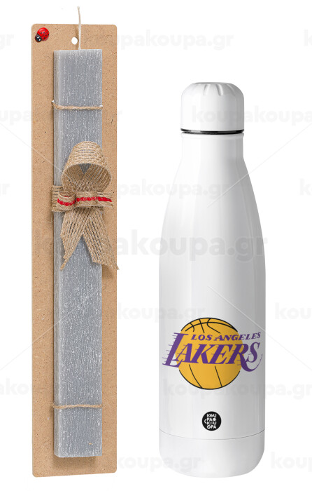Lakers, Easter Set, metallic stainless thermos bottle (500ml) & scented flat Easter candle (30cm) (GRAY)
