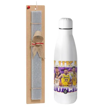 Luka Doncic Basketball , Easter Set, metallic stainless thermos bottle (500ml) & scented flat Easter candle (30cm) (GRAY)