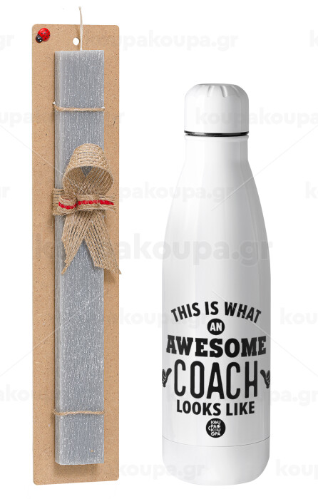 This is what an awesome COACH looks like!, Easter Set, metallic stainless thermos bottle (500ml) & scented flat Easter candle (30cm) (GRAY)