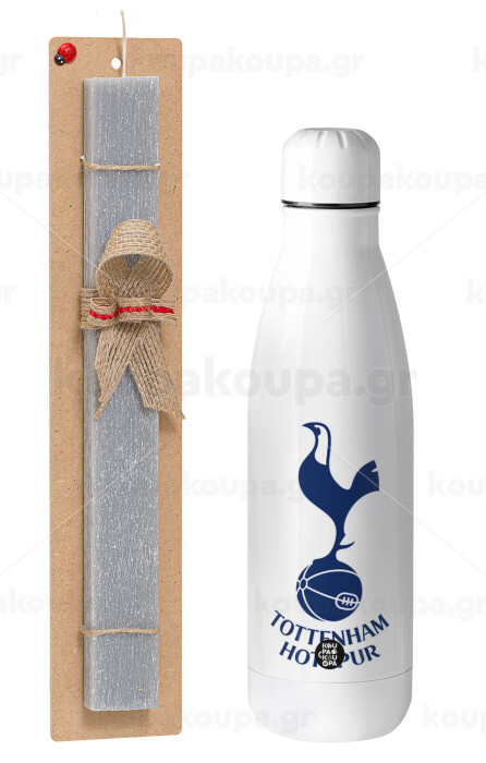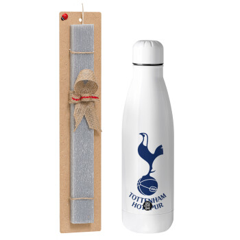 Tottenham Hotspur, Easter Set, metallic stainless thermos bottle (500ml) & scented flat Easter candle (30cm) (GRAY)