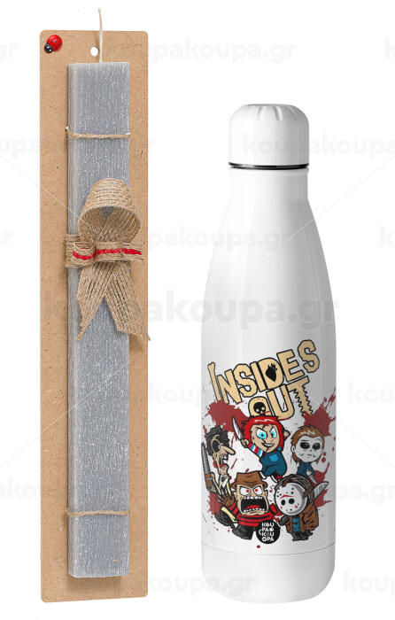 Halloween Inside out, Easter Set, metallic stainless thermos bottle (500ml) & scented flat Easter candle (30cm) (GRAY)