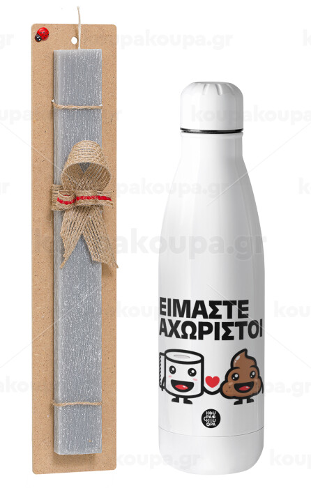 Είμαστε αχώριστοι, Easter Set, metallic stainless thermos bottle (500ml) & scented flat Easter candle (30cm) (GRAY)