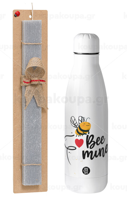 Bee mine!!!, Easter Set, metallic stainless thermos bottle (500ml) & scented flat Easter candle (30cm) (GRAY)