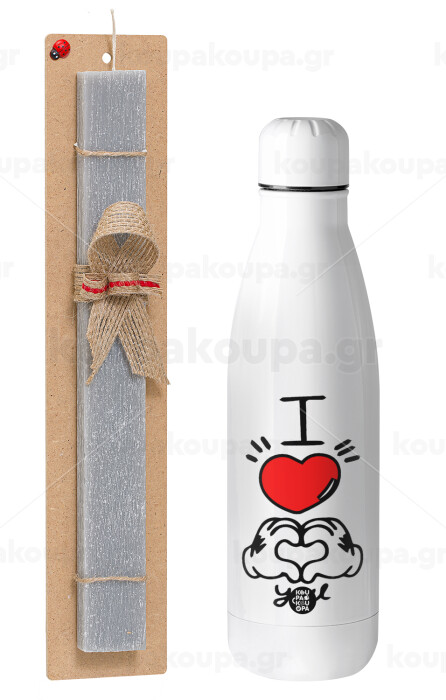 comics hands love, Easter Set, metallic stainless thermos bottle (500ml) & scented flat Easter candle (30cm) (GRAY)