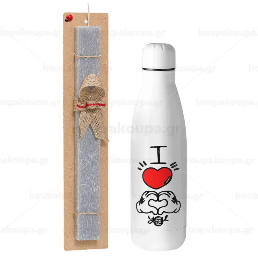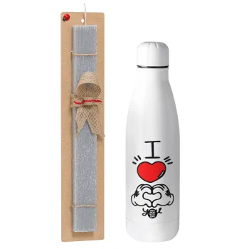 comics hands love, Easter Set, metallic stainless thermos bottle (500ml) & scented flat Easter candle (30cm) (GRAY)