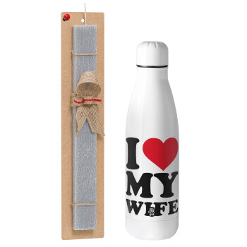 I Love my Wife, Easter Set, metallic stainless thermos bottle (500ml) & scented flat Easter candle (30cm) (GRAY)